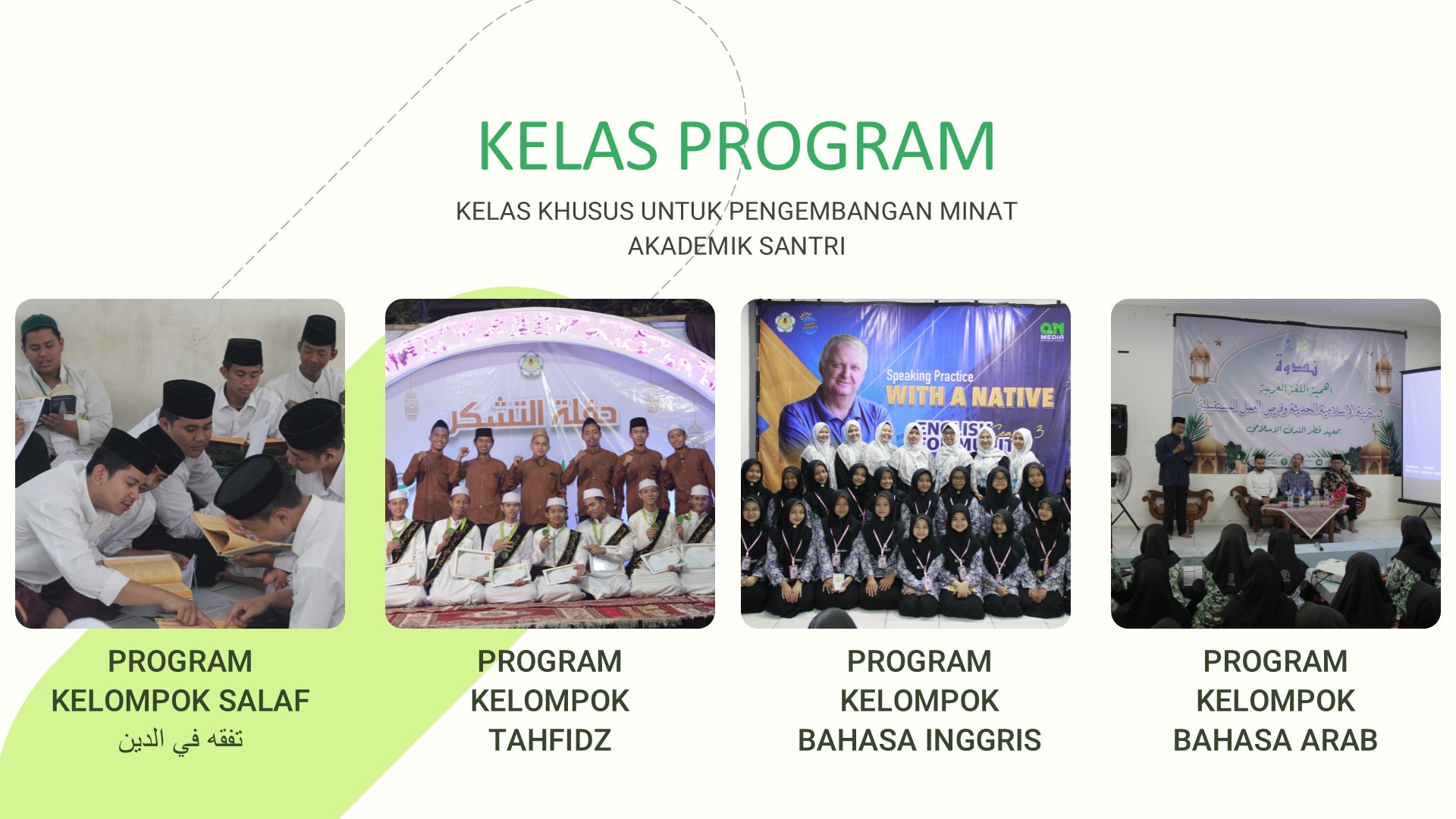 - Program Khusus Tahfidz, adalah Program yang dikhususkan bagi santri yang ingin fokus dalam menghafal dan mengkaji Al-Qur’an. Kompetensi yang ingin dicapai dari Program ini adalah :